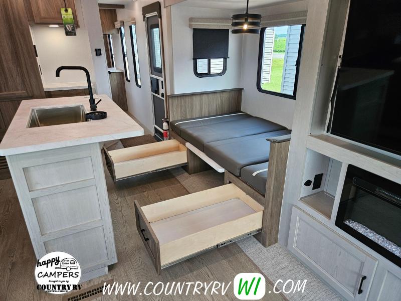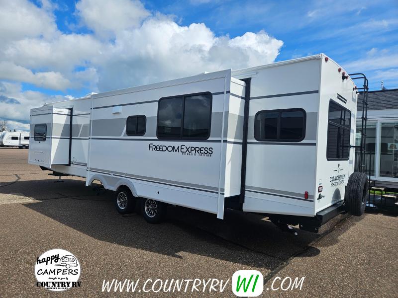 2026 Freedom Express Ultra Lite 324RLDS — a spacious rear living floor plan with an outside kitchen, all in a non-bunkhouse layout! This unit is perfect for towing or setting up on a seasonal site, private property, or even for wintering down south. What really sets this floor plan apart is the master bedroom slide, XL wardrobe, and residential-size shower — offering more space and storage than most. The island kitchen provides an abundance of counter space and storage, which is always a big plus! If you're looking to upgrade to something that feels like a clear step up from your current camper, this one is definitely worth seeing in person.