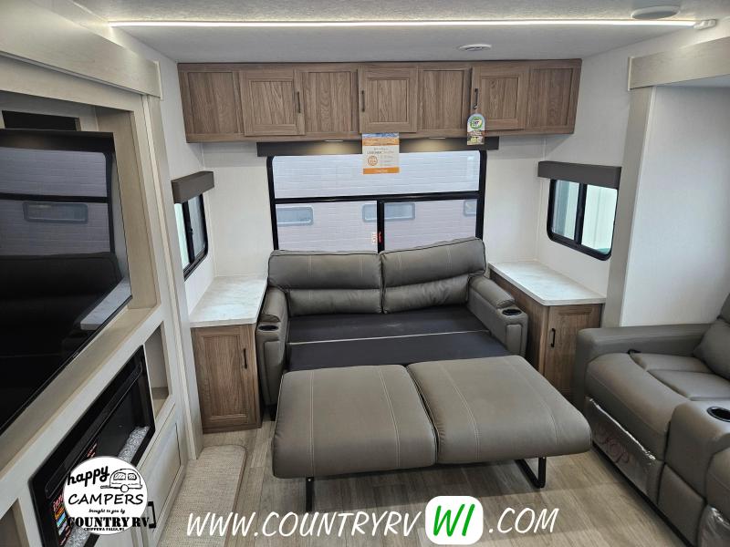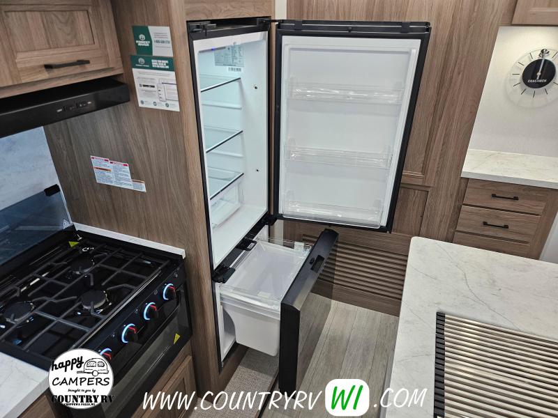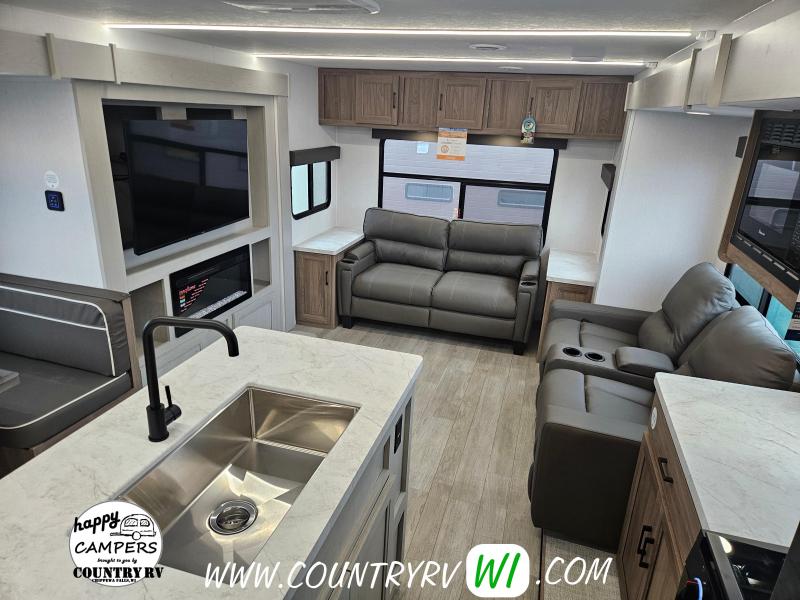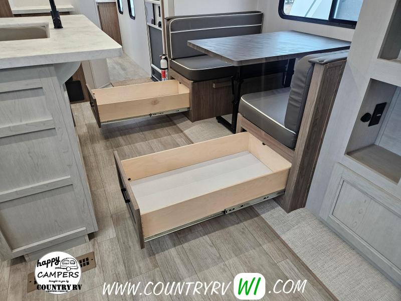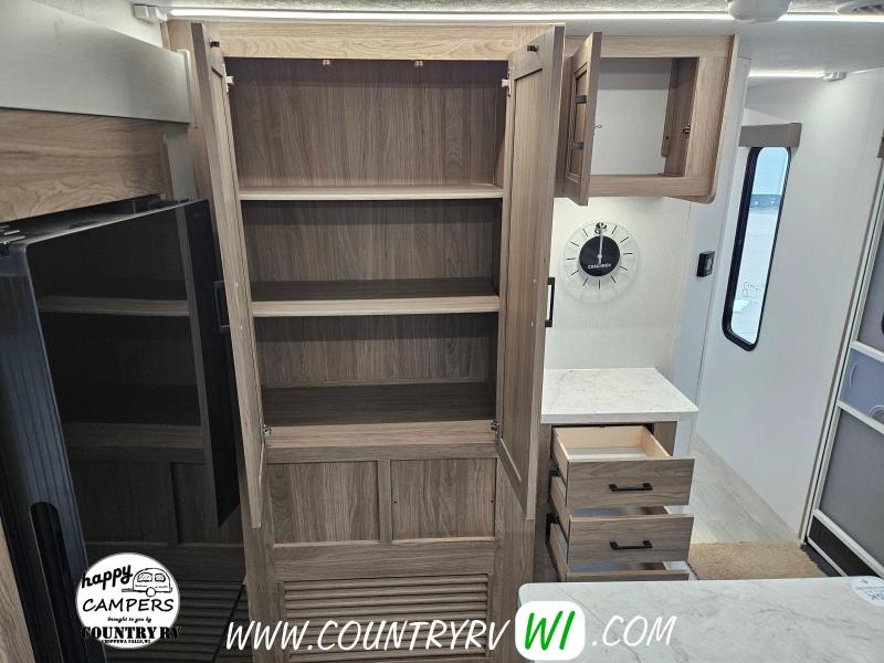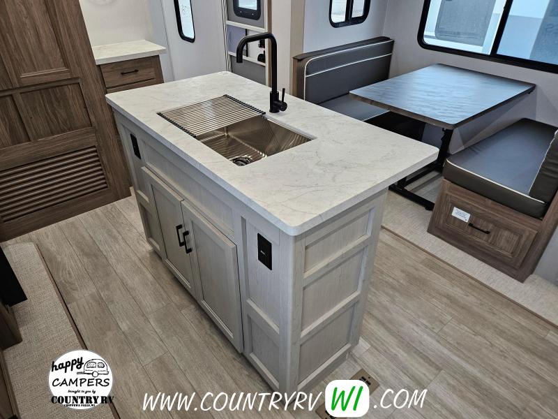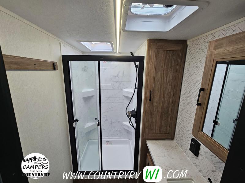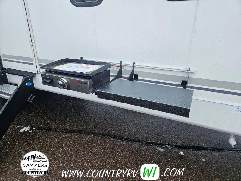 The 2026 Freedom Express Ultra Lite 324RLDS offers a spacious rear living floor plan with an outside kitchen, all in a convenient non-bunkhouse layout, making it ideal for towing, seasonal sites, private property, or even wintering down south. What sets this floor plan apart is the master bedroom slide, XL wardrobe, and residential-size shower, providing more space and storage than most units. The island kitchen delivers abundant counter space and storage, perfect for meal prep and entertaining. If you’re looking to upgrade to a camper that feels like a clear step up, the 324RLDS is definitely worth seeing in person.