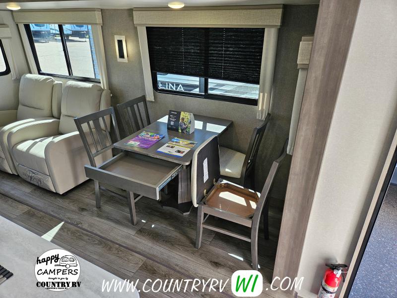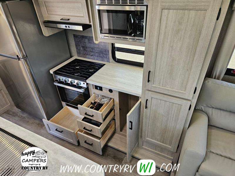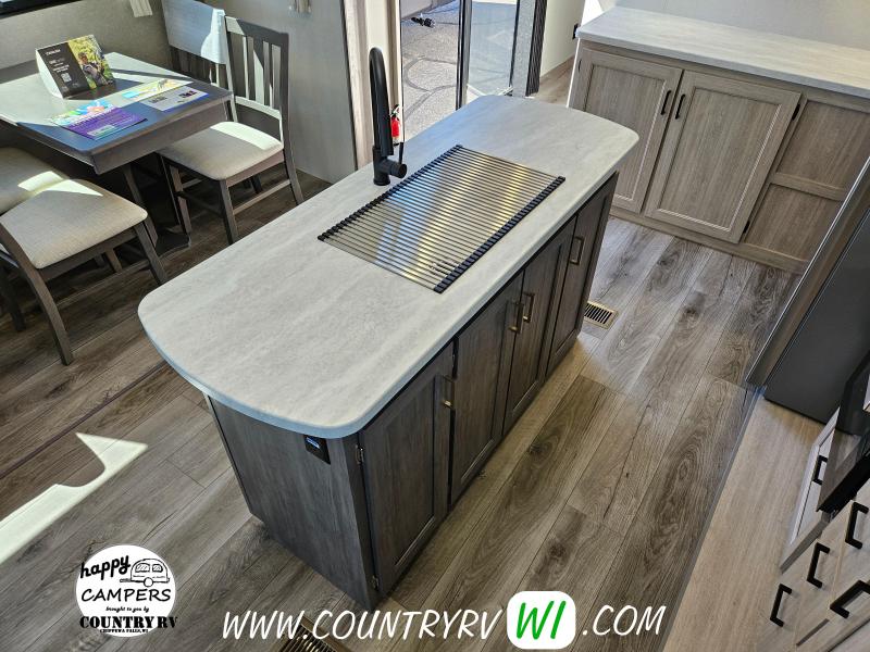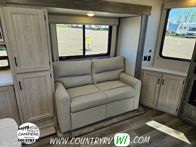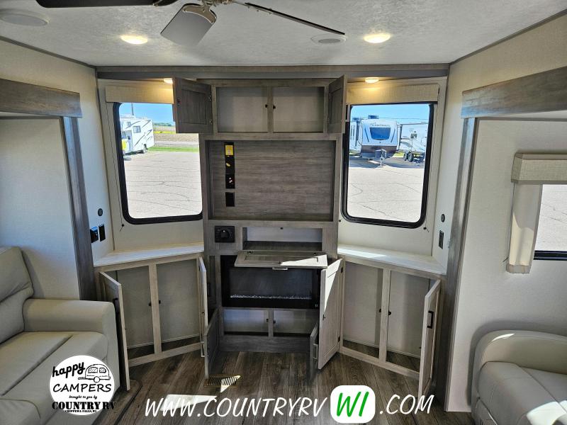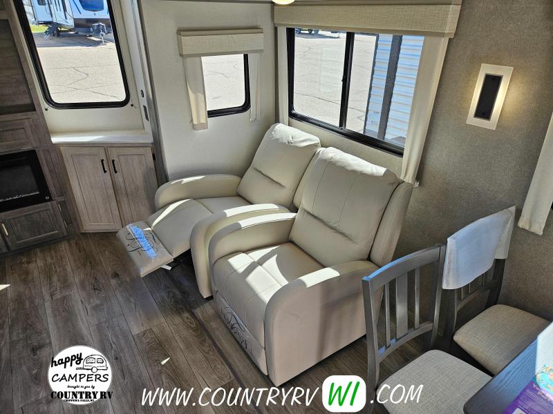 Destination Edition Value Package: Universal 600W Solar Prep w/ Installed Roof Panel Port, LCI One Control, Siphon 360 Roof Vent, Glass Step-In Shower w/ ABS Surround, 5/8" Tongue and Groove Stabledeck Flooring, Bedroom USB and Outlets, Living Room and Master Bedroom Ceiling Fans w/ Wall Switch (N/A on all floorplans), Friction Hinge Door(s), Power Vent Fan in Living Room AND Bathroom (Retail Value $2,299.00) Home Entertainment Package: JBL Aura Head Unit, 2 JBL Premium Interior Speakers, 2 JBL Premium Exterior Speakers, Full 4G LTE/Wifi Booster/Wifi Extender Prep, (Retail Value $499.00) General Electric Appliance and Kitchen Package - Destination: Stainless Microwave, 21" Stainless 3-Burner Gas Range with Metal Back-Lit Knobs, 15,000 BTU GE A/C, Gas/Electric DSI Water Heater, Thermofoil Countertops w/ Smooth Drop Edge, Deep Basin Farm Style Sink, Stainless Steel Drying Rack, Stone Backsplash, (2) USB and (2) 110 outlets (Retail Value $1,890.00) Extended Stay Convenience Package: Fireplace in Living Room, Theater Seating with Phone Charger Console (Per Floorplan), Serta Mattress, Washer/Dryer Prep (Per FP), LP Quick Connect, 10 Gallon G/E DSI Water Heater, Exterior TV Hookups, Black Tank Flush, Hot/Cold Outside Shower, XL Grab Handle at Main Entrance, Battery Disconnect, 4,000 Lumen Interior Touch Lighting (Retail Value $1,225.00)