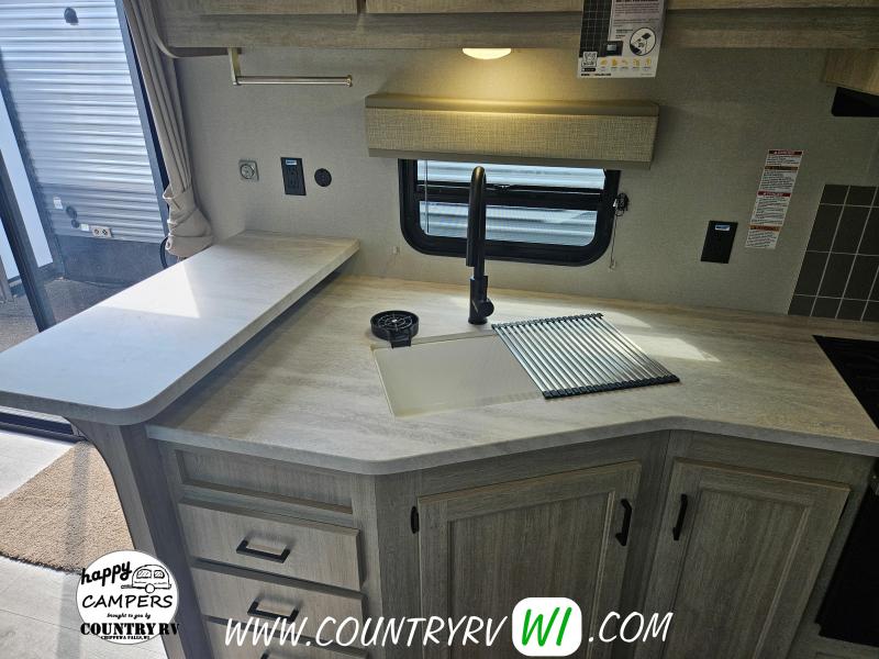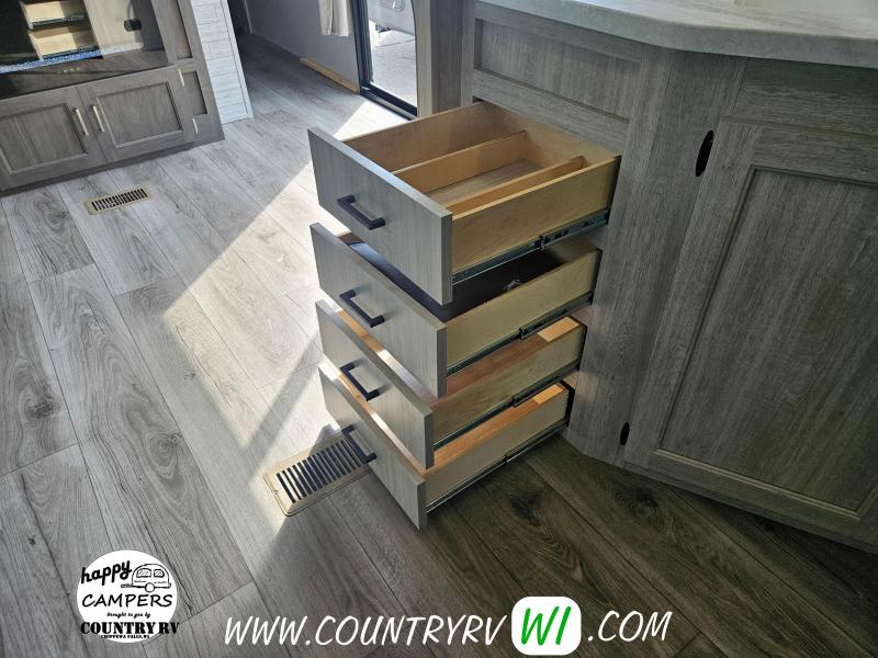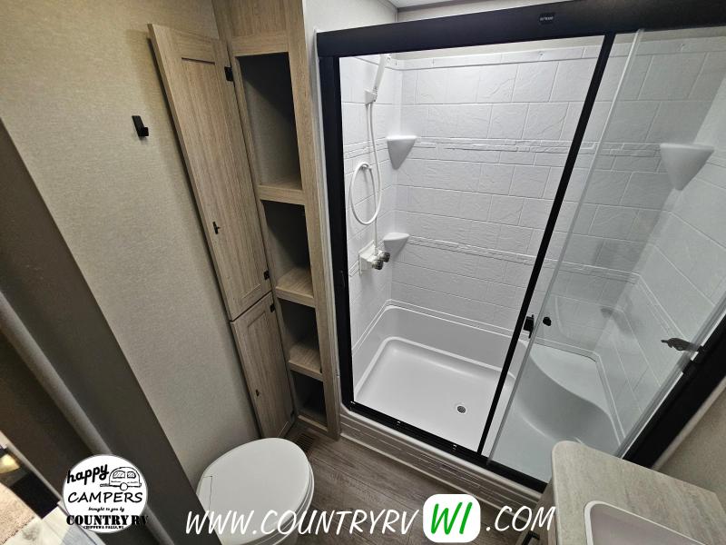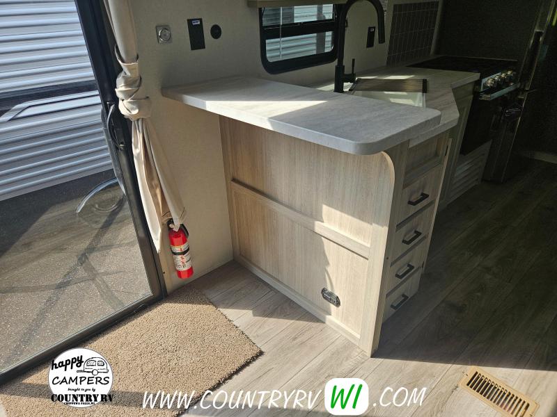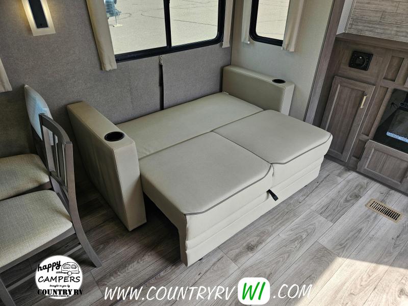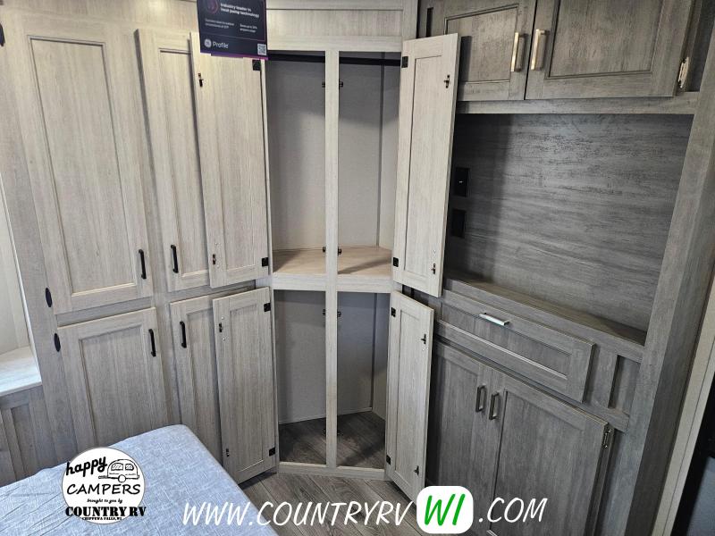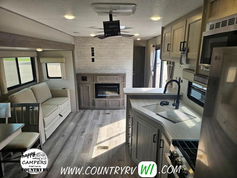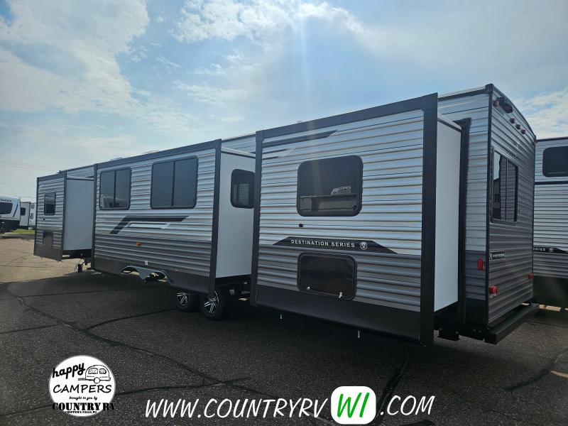 Destination Edition Value Package: Universal 600W Solar Prep w/ Installed Roof Panel Port, All-In-One Control Panel With Dimmer Switch, Siphon 360 Roof Vent, Glass Step-In Shower w/ ABS Surround, 5/8" Tongue and Groove Stabledeck Flooring, Bedroom USB and Outlets, Living Room and Master Bedroom Ceiling Fans w/ Wall Switch (N/A on all floorplans), Black Glass Friction Hinge Door(s), Power Vent Fan in Living Room AND Bathroom (Retail Value $2,299.00) Home Entertainment Package: JBL Aura Head Unit, 2 JBL Premium Interior Speakers, 2 JBL Premium Exterior Speakers, Full 4G LTE/Wifi Booster/Wifi Extender Prep, (Retail Value $499.00) General Electric Appliance and Kitchen Package - Destination: Stainless Microwave, 21" Stainless 3-Burner Gas Range with Metal Back-Lit Knobs, 15,000 BTU GE High Efficiency A/C With Heat Pump, 10 Gallon Gas/Electric DSI Water Heater, Thermofoil Countertops w/ Smooth Drop Edge, Deep Basin Farm Style Sink, Stainless Steel Drying Rack, Brick Backsplash, (2) USB and (2) 110 outlets (Retail Value $1,890.00) Extended Stay Convenience Package: Fireplace in Living Room, Tri-Fold Sofa, Serta Mattress, Washer/Dryer Prep (Per FP), LP Quick Connect, Exterior TV Hookups, Black Tank Flush, Hot/Cold Outside Shower, XL Grab Handle at Main Entrance, Battery Disconnect, 4,000 Lumen Interior Touch Lighting (Retail Value $1,225.00)