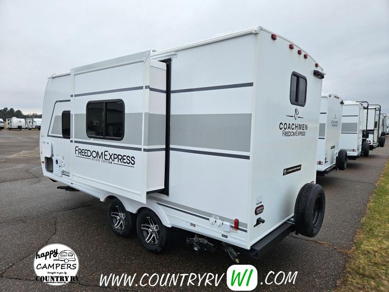 Check this unit out! NEW Floor plan for 2025! The Freedom Express SE line up is bringing you a TANDEM AXLE 18' model. This model has a walkaround bed w/vaulted underbed storage, sofa in a small slide, large bathroom with a very spacious shower! This unit weighs under 4000# and can be towed by most SUV's. Want to know if your vehicle is capable? Let us help!