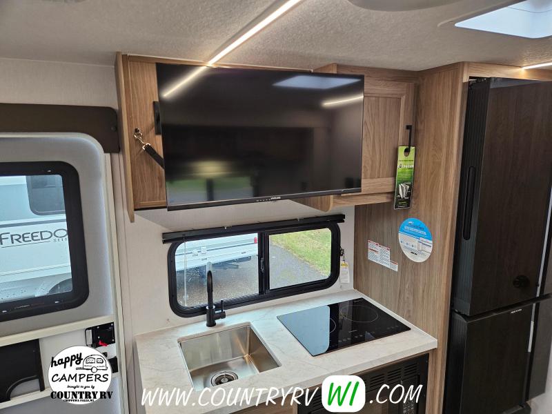 SE PACKAGE: Aluminum Construction W/Front Window, Vacuum Bonded Walls w/ Azdel Composite Int. and Ext., Radial Tires w/ Black Steel Wheels, Spare Tire, Detachable Power Cord, Power Awning, Tinted Safety Glass Windows, Front Rock Guard, E-Z Lube Axles, Heated/Enclosed Underbelly, Full Walk-On Roof, Tufflex PVC Roofing, Winterize Ready Kit, Ducted Furnace and Air (N/A 18SE or 19SE), TV Ant w/ Wifi & 4 G Prep, Freedom Solar Ready, Pet Leash & Bottle Opener, 81" Interior Ceiling, Bluetooth Speaker, Tankless Water Heater, LED Interior Lighting, Night Shades, Hidden Hinge Cabinetry, Microwave, Oven w/ 3 Burner Cooktop (N/A 18SE or 19SE), 12 Volt 10.7 Cubic Foot Refrigerator, Silverware Drawer (N/A 17BL), 60"x80" Queen Mattress w/ Cover, USB Ports, Bath Skylight, Friction Hinge Entry Door, RVIA LEISURE PACKAGE: LED Smart TV, Power Tongue Jack, LED Awning Light