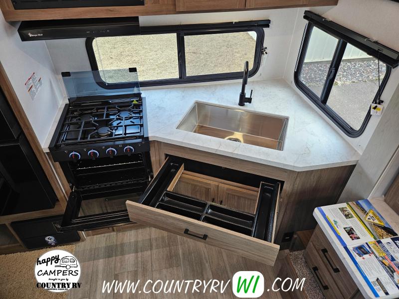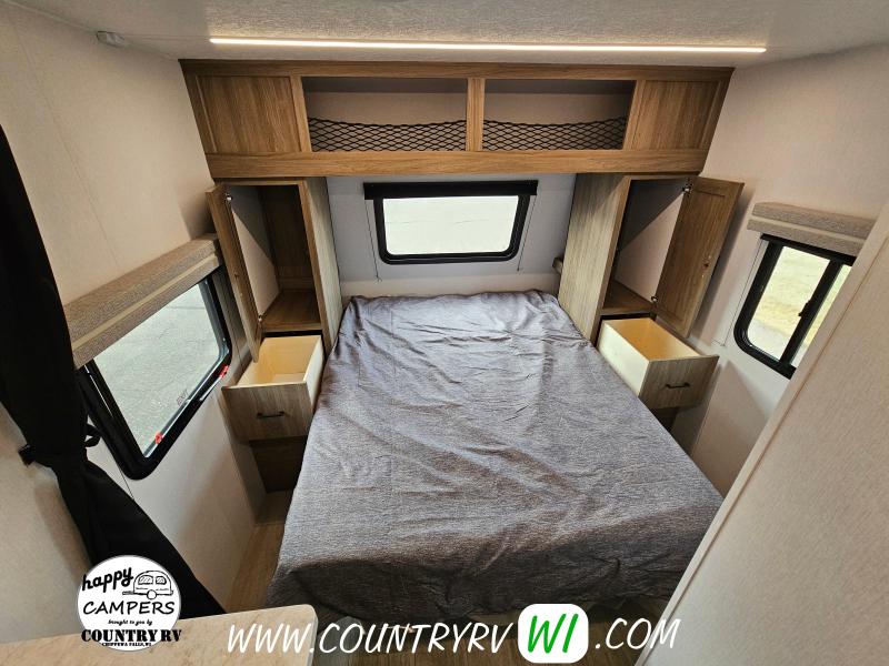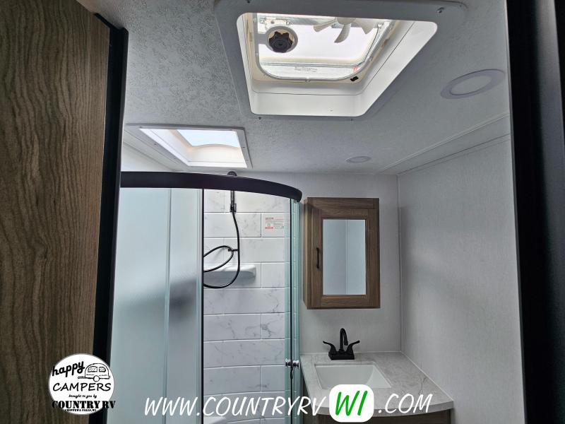 SE PACKAGE: Aluminum Construction W/Front Window, Vacuum Bonded Walls w/ Azdel Composite Int. and Ext., Radial Tires w/ Black Steel Wheels, Spare Tire, Detachable Power Cord, Power Awning, Tinted Safety Glass Windows, Front Rock Guard, E-Z Lube Axles, Heated/Enclosed Underbelly, Full Walk-On Roof, Tufflex PVC Roofing, Winterize Ready Kit, Ducted Furnace and Air (N/A 18SE or 19SE), TV Ant w/ Wifi & 4 G Prep, Freedom Solar Ready, Pet Leash & Bottle Opener, 81" Interior Ceiling, Bluetooth Speaker, Tankless Water Heater, LED Interior Lighting, Night Shades, Hidden Hinge Cabinetry, Microwave, Oven w/ 3 Burner Cooktop (N/A 18SE or 19SE), 12 Volt 10.7 Cubic Foot Refrigerator, Silverware Drawer (N/A 17BL), 60"x80" Queen Mattress w/ Cover, USB Ports, Bath Skylight, Friction Hinge Entry Door, RVIA LEISURE PACKAGE: LED Smart TV, Power Tongue Jack, LED Awning Light