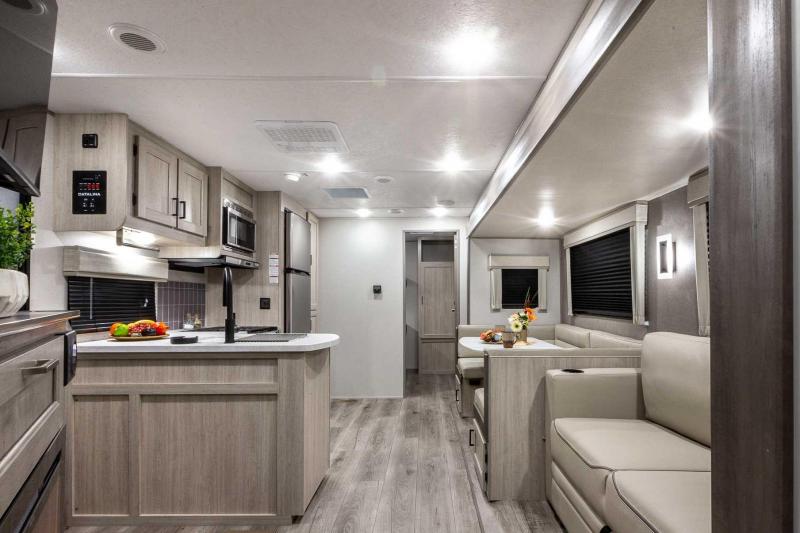 2025 Coachmen Catalina Legacy Edition 293TQBS Travel Trailer is a "one of a kind" offering space for the entire family! How often do you see bunkhouses that once the children are beyond the grade school years or over 4' that they no longer like the little bunk beds? OR do they not like the closed off feeling of the corner double bunks? THIS UNIT SOLVES THAT PROBLEM - long term! The Queen bunk beds in a bunk room allow for full length access for ease of getting in & out of bed. No matter the age or growth your child will fit in this bed. The bunkroom has plenty of floor space for changing & that paired with the storage makes for the perfect area for your children. CHECK IT OUT TODAY!