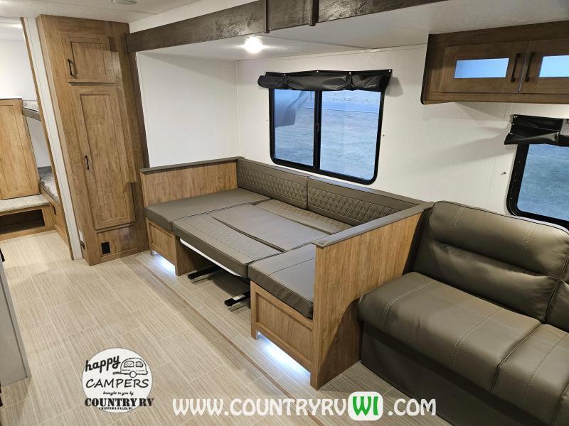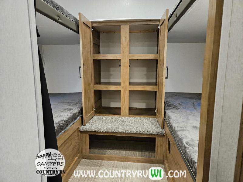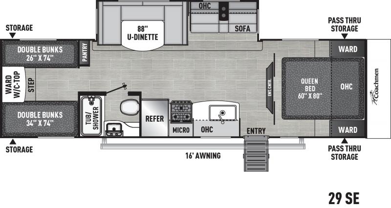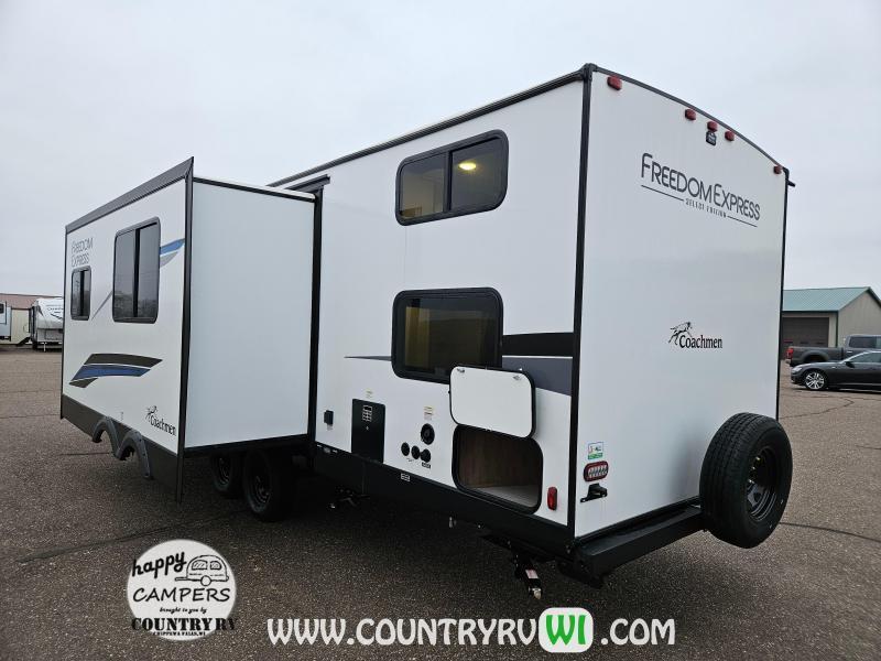 Freedom Express 29SE Quad Bunkhouse Travel Trailer comes with the Special Edition Package which offers campers with the upgraded construction and space of a standard Freedom Express but at a less expensive starting price by making some things simpler. This half ton towable floorplan offers sleeping for 4 kids in the private bunk room along with a U shaped dinette for more seating and a full size queen bed in the master bedroom (no more camper size short queen).