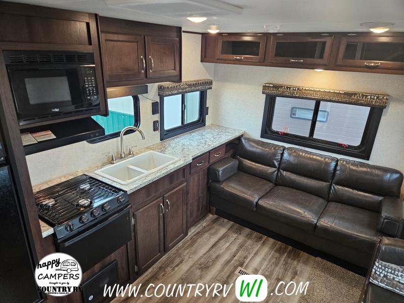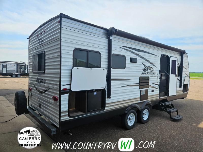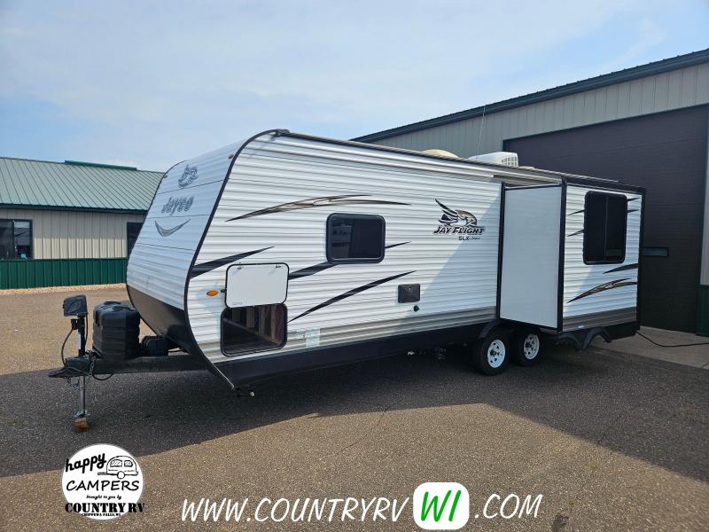 2018 Jayco Jay Flight 245RLS — This travel trailer features a single slide-out and a popular rear sofa floorplan. It comfortably sleeps 6–8 people, making it ideal for families or guests. This short and lightweight unit is easy to tow with a ½-ton pickup or SUV.