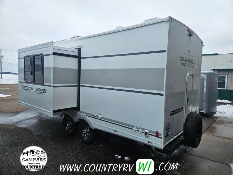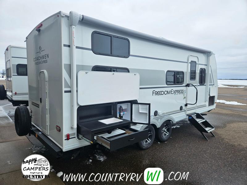 2026 Coachmen Freedom Express Select Edition 21SE offers a fresh, improved take on the classic bunkhouse layout. This lightweight, family-friendly travel trailer features an exterior camp kitchen and a 2" receiver prep—perfect for hauling bikes or extra gear. Inside, the bottom bunk flips up to create taller interior storage, ideal for bikes, kennels, or other camping essentials you want safely inside the camper. Step into the bathroom and you’ll immediately notice the larger shower, a standout feature compared to most units in this class. If you’re looking to keep weight and length down without sacrificing quality, comfort, or functionality—look no further.