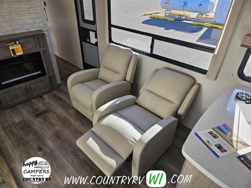 Package Information: - Panoramic 10 Ft. Slideout - Window - Front Radius Lighting - MORryde StepAbove Solid Steps - Safe-T-Rail Door Assist on Main Entry Door - Electric Awning w/Multicolor LED Strip & Remote - Electric Tongue Jack - G20 Tinted Privacy Windows - Hot/Cold Outside Utility Shower w/ Hands Free Holder - Black Tank Flush - Battery Disconnect Switch - Siphon 360 Holding Tank Roof Vent - (2) 20 lb. LP Tanks - Black ABS LP Bottle Cover - LP Quick Connect - Flush Mount Baggage Doors w/Radius Corners - Diamond Plate Rock Guard - Stabilizer Jacks - Premium JBL Exterior Speakers - Rear Floor to Ceiling Landscape Picture Windows (283EPIC) - Friction Hinged Black Glass Entry Door with Window - Exterior 110V G.F.C.I Protected Receptacle - Exterior RG-6 Coax Cabling and Satellite Prep - Exterior TV Hookup - Rain Gutters with Drip Spouts - Rear View Camera Prep - Solid Surface Kitchen Countertops, Seamless Thermofoil Countertops Outside of Kitchen Area - Porcelain Toilet - GE Glass Stainless 10.7 Cu. Ft. 12V Refrigerator (N/A 323MAZE) - GE Residential Style French Door 16.4 Cu. Ft. (323MAZE) - GE Stainless 3-Burner Gas Range with Metal Back-Lit Knobs Range Hood - GE Stainless Microwave W/Glass Turn Table - Premium Audio JBL Aura Cube Multi-Zone Function Media Center - Premium JBL Interior Speakers - SLS (Sit-Lounge-Sleep) Sofa with Interior Storage - Deep Basin Farm Style Sink Residential-Style Kitchen Faucet w/Pull Down Sprayer - Stainless Steel Drying Rack - High Pressure Glass Rinser - Washer/Dryer Prep (243RBS, 303RKDS, 313RLTS, 323BHDS, 323MAZE, 343BHTS) - Paper Towel Holder - All-In-One Control Panel with Dimmer Switch - Brick Style Backsplash - Congoleum Woodplank Linoleum Flooring - 4000 Lumin LED Interior Touch Lighting - Bunkroom Jackknife Sofa (293QBCK, 323BHDS, 343BHTS) - Hard Valance Window Treatments - Pedestal Thermofoil Dinette Table - Under Bench Dinette Storage (Per Floorplan) - Easy Access Booth Dinette Storage Doors - 12V 14" Living Room Power Vent Fan - 12V 14" Bathroom Power Vent Fan - ABS Tub/Shower Surround w/Shelves - Shower/Coat Hooks - Skylight Above Tub/Shower - Glass Step-In Shower w/ABS Surround (Per Floorplan) - Medicine Wall Cabinet with Mirror - Bedroom Surface Mounts USB Ports (Each Night Stand) - Kitchen USB's & Outlets - USB Surface Mounts Near Bunk Beds - Master Bed Directional Reading Lights (303RKDS, 313RLTS, 323MAZE, 343BHTS) - Solid Master Bedroom Door(s) (Per Floorplan) - Solid Bunk Room Door (Per Floor Plan) - Full Length Night Stands with Shelves (N/A Bed Slide-Outs)” - Mirrored Wardrobes in Master Bedroom - Master Bedroom Overhead Cabinets - Underbed Storage w/Separation from Outside Front Storage - Designer Fitted Master Bed Sheet - Full Lino in Slide-Outs and Bedrooms (Carpet less) - GE 60K BTU Tankless On Demand Water Heater - GE 13,500 BTU Fully Ducted A/C with Heat Pump - 81" Interior Height (6' 9") - Undermount Spare Tire - 35,000 BTU Auto-Ignition Furnace w/Wall Thermostat (N/A 283RKS) - 30,000 BTU Auto-Ignition Furnace w/Wall Thermostat (283RKS Only) - Upgraded Aluminum Wheels - Magnetic Hands Free Baggage Door Latches - Cambered Structural Steel I-Beam Frame - Norco Electromagnetic, Powder Coated Chassis - Full Length Frame Outriggers - 5/8" Tongue & Groove StableDeck Flooring - 2"x3" Floor Joists on Approximately 12" Centers - 5" Floor To Frame Steel Lag Bolts - Enclosed, Fully Sealed Corrugated Underbelly - Darco Subfloor Protective Wrap/Enclosure - Seamless Alpha Roof Membrane with Lifetime Warranty - Cross-Braced Engineered Roof Trusses w/5" Crown - 3/8" Fully Decked Walk-On Roof - Screwed Cabinet Construction w/Pocket Bored Lumber Core Stiles - 5/8" Plywood Under Bed & Dinette Base - Easy-Trac Rack and Pinion Through Frame Main Slide-Out(s) - R-7 Fiberglass Insulation Throughout - Water Heater By-Pass Winterization Kit - 12V Demand Water Pump - Premium Exterior Graphics Package - Upgraded Front Graphics Design - Platinum .024" Aluminum Exterior w/.030 Skirt Metal - Smooth HD Aluminum Radius Front - Polished HD Aluminum Fender Skirts - EZ Lube Axles w/Leaf Spring Suspension - Self Adjusting Brakes - Roto-Cast Holding Tanks - Bumper w/ Drain Hose Carrier and End Caps - Residential-Style In-Floor Ducted Heat - Magnadyne Antenna - 30 Amp Electric Service w/ 100v 45-Amp Power Covt. - 50 Amp Electric Service (Standard on 303RKDS, 313RLTS, 323BHDS, 323MAZE, 343BHTS)