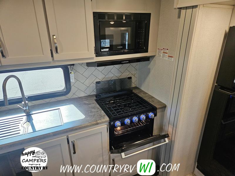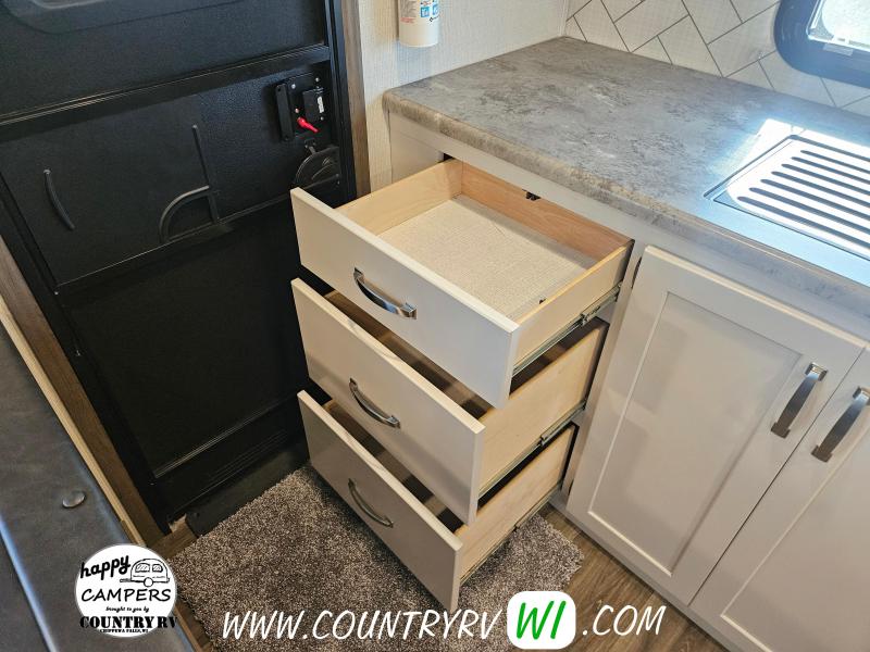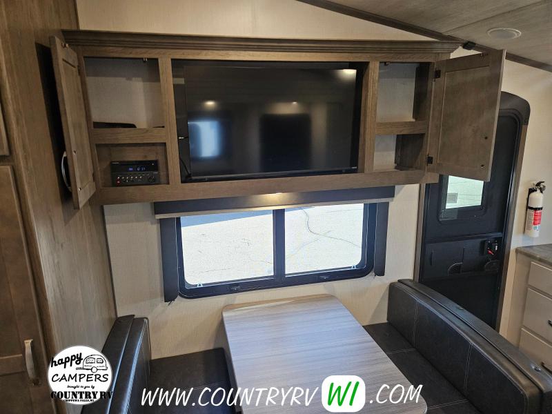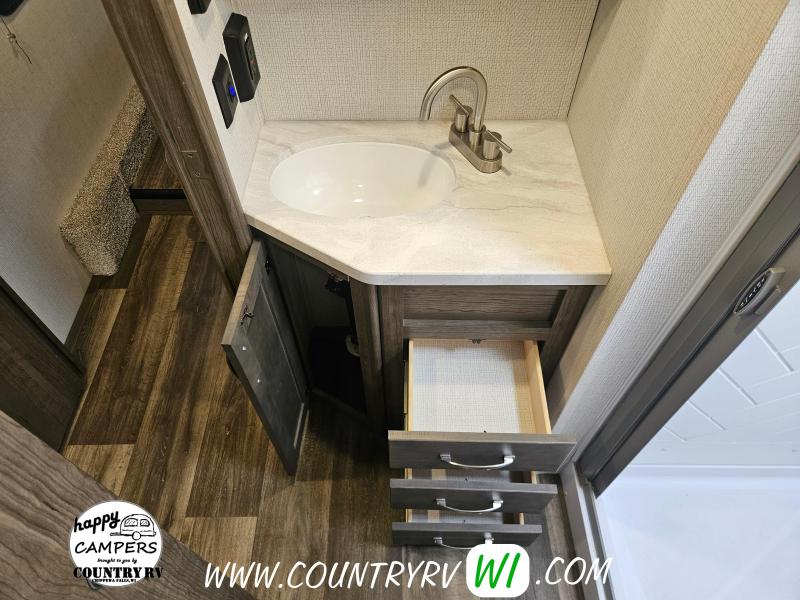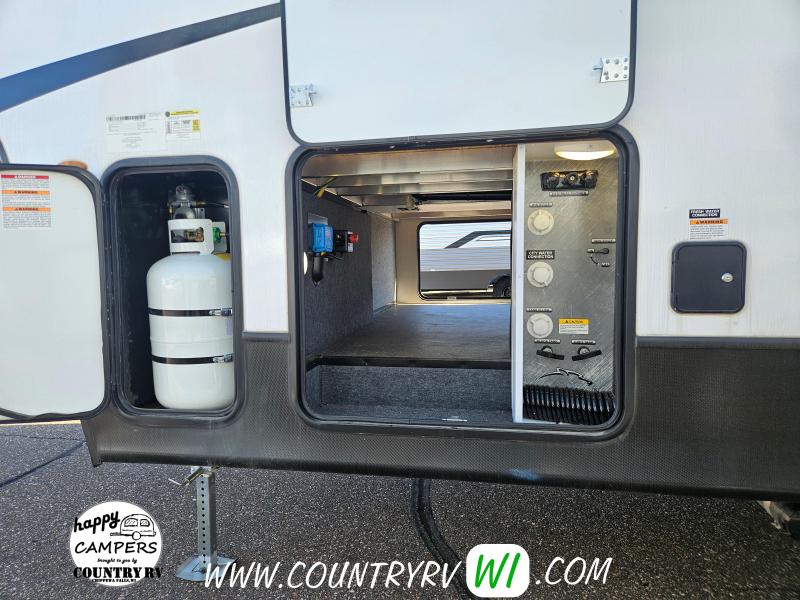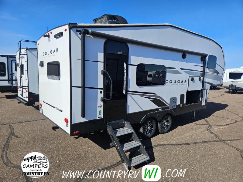 The 2023 Cougar 2100RK 5th Wheel is a dry camper’s dream! Powered with a solar panel and lithium battery, this rig is ready for off-grid adventures. The rear kitchen boasts plenty of countertop space and ample storage—perfect for cooking and entertaining. Step inside and you’ll immediately notice the handy shoe cubby. The 10 cu. ft. refrigerator keeps all your favorites fresh, while the tri-fold sofa across from the TV makes movie nights a breeze. Hosting friends? Fold out the hide-a-bed and lower the dinette to sleep up to six comfortably. Upstairs, the bathroom features a motion-activated light and a spacious shower that everyone will love. The master bedroom is designed with CPAP-ready sides of the bed and a large wardrobe for all your storage needs. The 2023 Cougar 2100RK isn’t just a camper—it’s your home away from home.