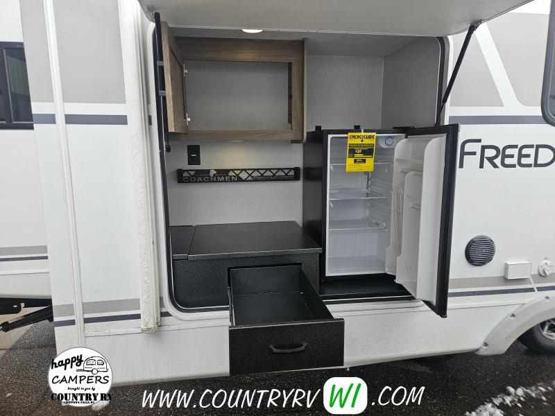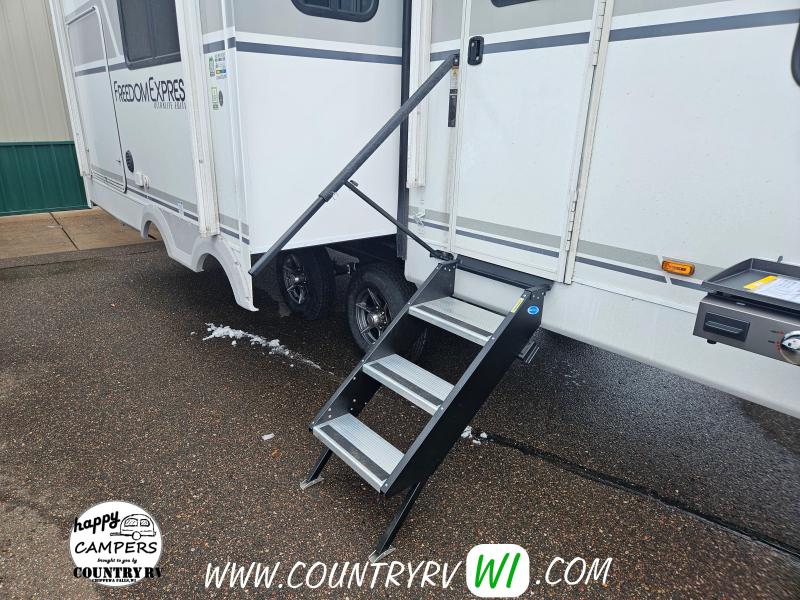 Freedom Value Package: - 3/4 Gel-Coated Fiberglass Cap with Automotive Glass Windshield - Alumicage Construction & Vacuum-Bonded Walls with Azdel Composite Inside & Out (No Delamination) - Aluminum Wheels & Spare Tire Kit - Detachable Power Cord - Power Awning with LED Light Strip - Tinted Safety Glass - Front Diamond Plate - EZ Lube & Spread Axle Design - Heated & Enclosed Underbelly - Full Walk-On Roof with Tufflex PVC Roofing - Exterior Shower - Winterization Ready Kit & Black Tank Flush - Ducted Furnace & Ducted Ceiling A/C - Magnetic Baggage Catches - 24x48" Resin Outdoor Table - TV Antenna (WiFi/4G Prep) & Exterior TV Hookup - Exterior Speakers - Freedom Solar Ready & Backup Camera Prep - Battery Disconnect & Aluminum Solid Steps - Pet Leash/Bottle Opener - 81” Interior Height - Interior Bluetooth Speaker - LED SMART TV & LED Interior Lighting - Night Shades & Carefree Flooring - Hidden Hinges, Sink Cover - Microwave & Oven with 3-Burner Glass Top - Double Door Refrigerator & Utensil Drawer - 60x80 Residential Size Queen Bed - USB Ports - Skylight/Power Vent in Bath & Porcelain Toilet - Friction Hinge Entry Door - Freedom Vault Bed Storage - Ultra-Light Express Package: - Power Tongue Jack - Griddle & Table Ladder - New Bedroom Shelf for Sleeping Devices (e.g., CPAP Machine)