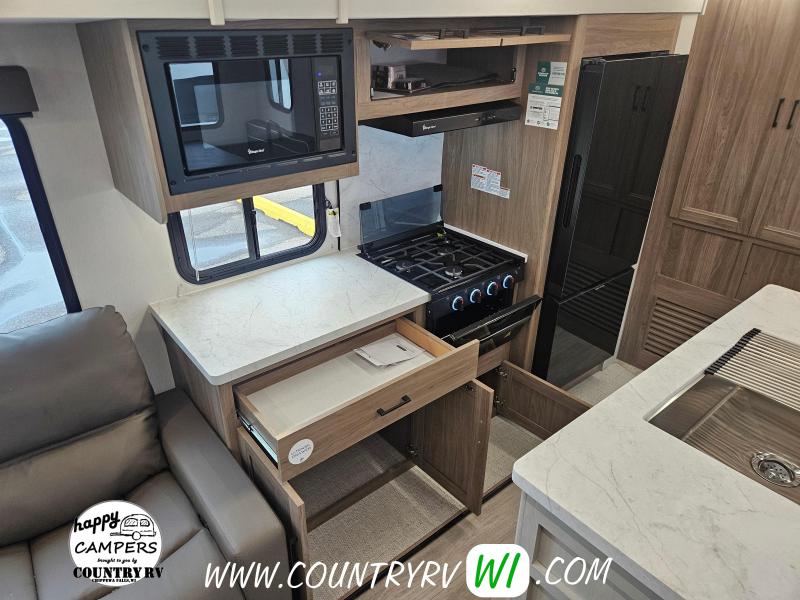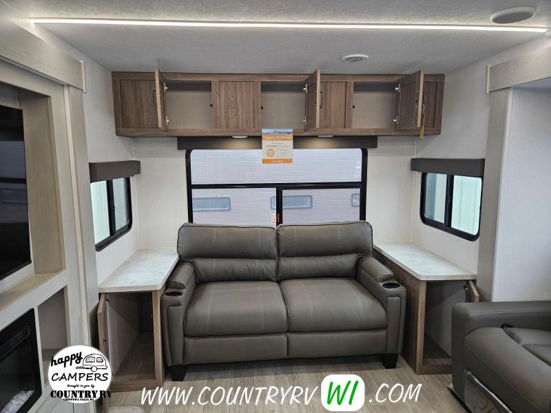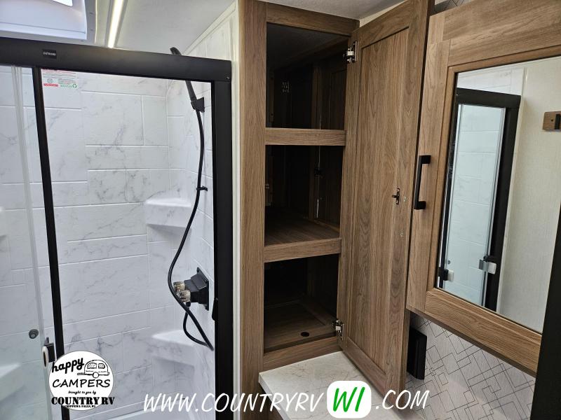 The 2026 Freedom Express Ultra Lite 324RLDS offers a spacious rear living floor plan with an outside kitchen, all in a convenient non-bunkhouse layout, making it ideal for towing, seasonal sites, private property, or even wintering down south. What sets this floor plan apart is the master bedroom slide, XL wardrobe, and residential-size shower, providing more space and storage than most units. The island kitchen delivers abundant counter space and storage, perfect for meal prep and entertaining. If you’re looking to upgrade to a camper that feels like a clear step up, the 324RLDS is definitely worth seeing in person.