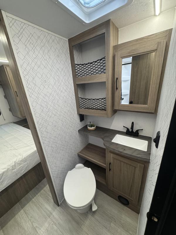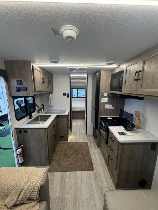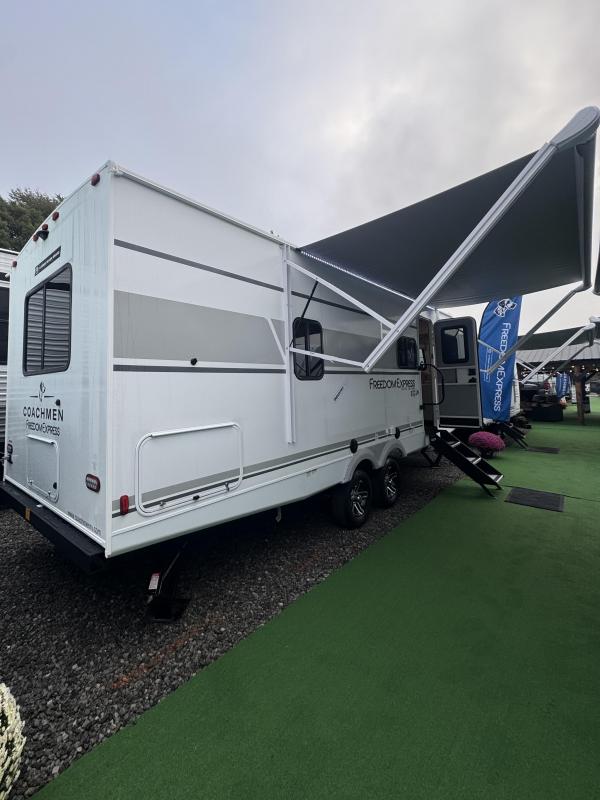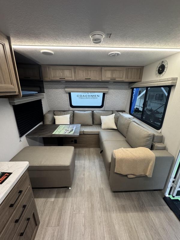 NEW FLOOR PLAN ALERT! 2026 Freedom Express 249SE offers a new front dinette layout which converts to very large sleeping space or a large sofa space for those bad weather days. The pass through bathroom will offer you a larger shower and more space. The rear bedroom will keep your sleeping space away from the road and noise along with a 60X80 queen size bed.