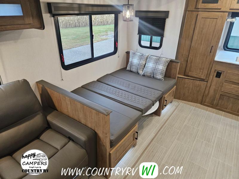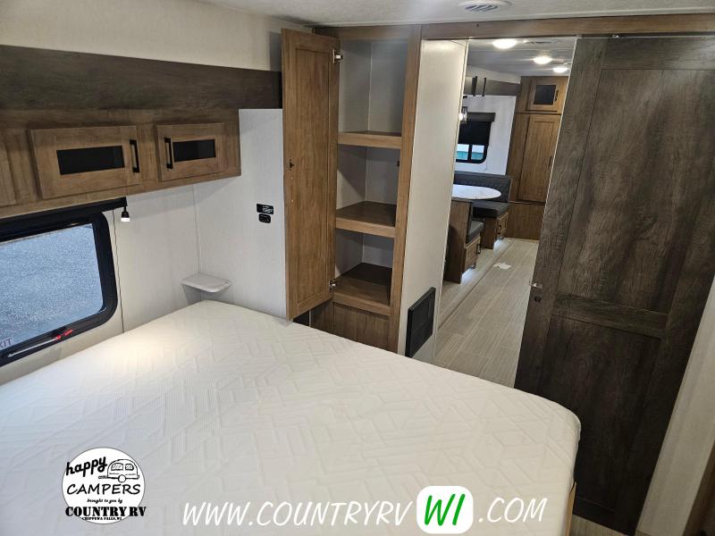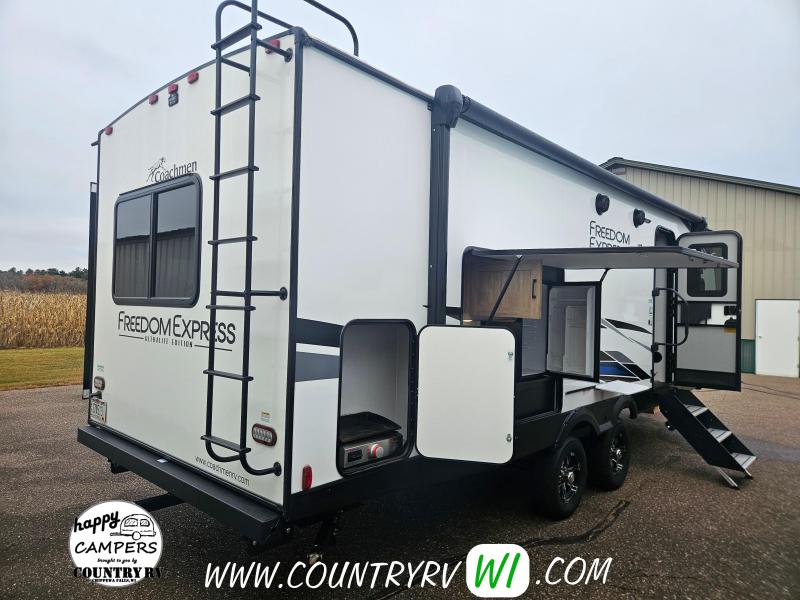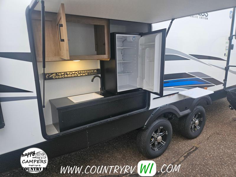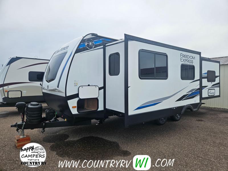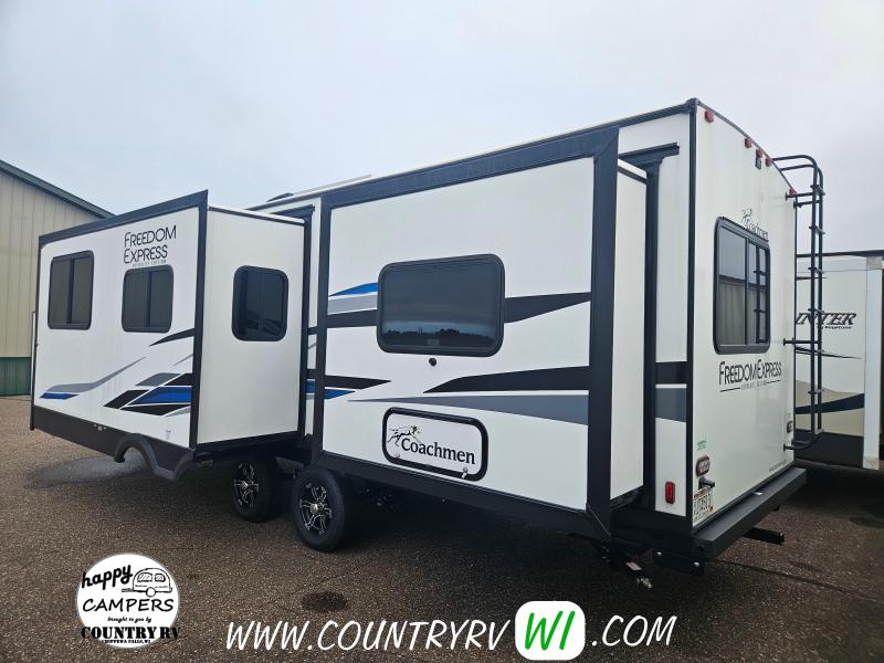 2024 Coachmen Freedom Express 259FKDS Ultra-Light Travel Trailer. This front kitchen layout will offer lots of counter and cabinet storage for only being 29' in length along with an entry closet! The theater seating will make you feel right at home positioned directly in front of your flat screen tv. The grand finale is definitely the KING SIZE BED that slides out to give more space in the bedroom!...And what you don’t find often in a couples unit your very own outside kitchen!