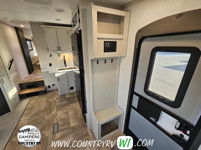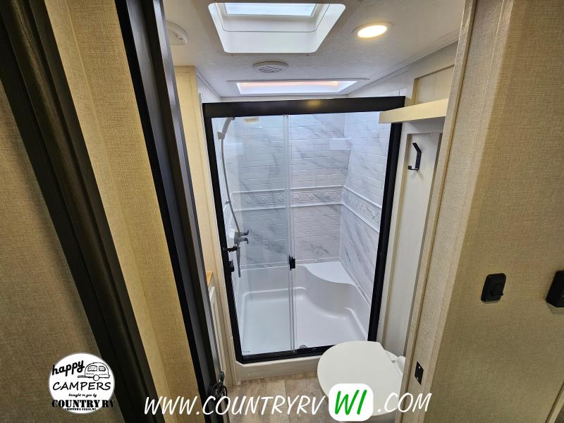 CONSTRUCTION & WEATHER PROTECTION: - 6X™ Double Azdel® Aluminum Cage Sidewall System — Vacuum Bonded (R-15+) - Tri-Tex™ Powder Coated Frame Technology — Up to 5X More Weather Resistance - 5" Truss Rafters (16" OC & Double at A/C) with Full Walk-On 3/8" Roof Decking - Radiant Pro™ Weather Barrier System (Roof, Cap, Underbelly, Slides & Pass-Through) - WEATHER SHIELD +™ — 0° Cold Tested & 110° Hot Tested Sectionalized Underbelly with Heated Gate Valves & Circulating Furnace Forced Heat - High BTU Output Fully Ducted Furnace - EXTERIOR FEATURES & UPGRADES: - Upgraded 2026 Exterior Graphics Package - Electric Awning with LED Light Strip & Pitch Adjustment - LED Pass-Through Storage Light - LED Sewer Hose Hook-Up Lights - LED Entry Step Light - 80% Privacy Tint Safety Glass Windows - MORryde® StepAbove® Main Entry (3-Step; 4-Step on 368TBH) - XL 37" Extended Entry Grab Bar - Matte Black Metal Handrail at Stairs - 2" Accessory Receiver Hitch* - Electric Front Jacks & Electric Rear Stabilizer Jacks (Auto-Level Available) - SOLAR, POWER & AUDIO - Upgraded 200W Roof-Mounted Solar Panel (Scalable Add-On Capable) - Upgraded Lithium-Ready Converter & 30AMP Charge Controller by Rich Solar® - Upgraded JBL® Marine-Grade Exterior HD Speaker - JBL® Interior Soundbar with AM/FM & Bluetooth® - RUNNING GEAR - Equa-Flex® Suspension with ½" Thick Anodized Shackles, Bronze Bushings & Greaseable Zerk® Fittings - LionsHead™ 5,2,1 “No Excuse Guarantee” Radial Tire Warranty + Lifetime Rim - LIVING & ENTERTAINMENT: - Upgraded Carbon & Walnut - Entertainment Center - Upgraded 50" 4K Smart LED TV with Articulating Swing Arm (40" on Select Models) - Thomas Payne® Theatre Seating* (Model Specific) - Thomas Payne® Memory Foam Tri-Fold HAB Sofa* (Model Specific) - Walnut Secret Hidden Hinge Storage* - Walnut Table & Four Chairs with Residential Metal/Wood Design* - Streamlined Framed Floor Register Covers (360° Diffusion) - Upgraded HD Clear View™ LED Interior Lighting (Flush) with Motion Sensors - Slow-Rise Blackout Roller Night Shades - KITCHEN FEATURES: - Large Transom Window at Cooktop Backsplash - Modern High-Rise Kitchen Faucet - Upgraded Dual Swing GE® 10 cu. ft. 12V Refrigerator - Upgraded Stainless RV Microwave - GE® Profile™ 21" Stainless Steel Oven with Residential Cooktop, HD Grates & Piezo Ignition - Extra-Deep Single Basin Stainless Steel Sink - Aluminum Roll-Up Dish Drying Rack / Sink Cover (N/A 218SE) - Walnut Spice Rack with Matte Black Metal Dowels* Matte Black Paper Towel & Cup Holders - Upgraded Walnut Countertops with Vernon Mist Accent Wall* - BATHROOM FEATURES: - Large Main Shower with Sliding Glass Doors* (N/A 218SE) - Matte Black Shower Frame, Sprayer & Lav Hardware - Upgraded Toiletry Bag Shelf* - Board & Batten Accent Wall with Matte Black Towel Hooks* - Power Ceiling Vent Fan (12V) - Large Linen Closet* - LED Motion Sensor Light - High-Rise Porcelain Toilet with Foot Flush - BEDROOM FEATURES: - Full Residential 60" x 80" Mattress & Bedspread* (Otherwise RV Queen) - Upgraded Board & Batten Headboard - Walnut Bedside Nightstands / Wrap-Around Ledge with Cup Holders* - USB-A & USB-C Charging Ports* - 110V Outlets at Bed* - Ducted A/C Vents with Rotator/Closing Louvers - Slow-Rise Blackout Roller Night Shades