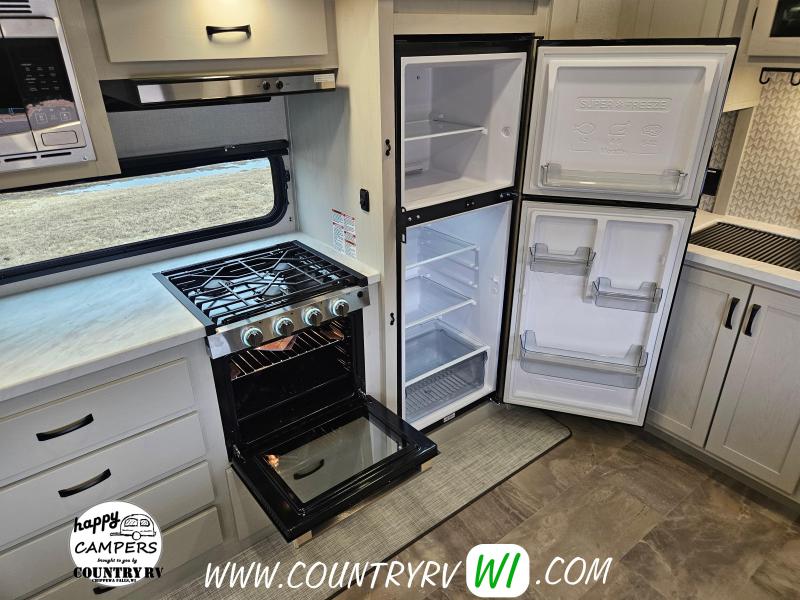CONSTRUCTION & WEATHER PROTECTION: - 6X™ Double Azdel® Aluminum Cage Sidewall System — Vacuum Bonded (R-15+) - Tri-Tex™ Powder Coated Frame Technology — Up to 5X More Weather Resistance - 5" Truss Rafters (16" OC & Double at A/C) with Full Walk-On 3/8" Roof Decking - Radiant Pro™ Weather Barrier System (Roof, Cap, Underbelly, Slides & Pass-Through) - WEATHER SHIELD +™ — 0° Cold Tested & 110° Hot Tested Sectionalized Underbelly with Heated Gate Valves & Circulating Furnace Forced Heat - High BTU Output Fully Ducted Furnace - EXTERIOR FEATURES & UPGRADES: - Upgraded 2026 Exterior Graphics Package - Electric Awning with LED Light Strip & Pitch Adjustment - LED Pass-Through Storage Light - LED Sewer Hose Hook-Up Lights - LED Entry Step Light - 80% Privacy Tint Safety Glass Windows - MORryde® StepAbove® Main Entry (3-Step; 4-Step on 368TBH) - XL 37" Extended Entry Grab Bar - Matte Black Metal Handrail at Stairs - 2" Accessory Receiver Hitch* - Electric Front Jacks & Electric Rear Stabilizer Jacks (Auto-Level Available) - SOLAR, POWER & AUDIO - Upgraded 200W Roof-Mounted Solar Panel (Scalable Add-On Capable) - Upgraded Lithium-Ready Converter & 30AMP Charge Controller by Rich Solar® - Upgraded JBL® Marine-Grade Exterior HD Speaker - JBL® Interior Soundbar with AM/FM & Bluetooth® - RUNNING GEAR - Equa-Flex® Suspension with ½" Thick Anodized Shackles, Bronze Bushings & Greaseable Zerk® Fittings - LionsHead™ 5,2,1 “No Excuse Guarantee” Radial Tire Warranty + Lifetime Rim - LIVING & ENTERTAINMENT: - Upgraded Carbon & Walnut - Entertainment Center - Upgraded 50" 4K Smart LED TV with Articulating Swing Arm (40" on Select Models) - Thomas Payne® Theatre Seating* (Model Specific) - Thomas Payne® Memory Foam Tri-Fold HAB Sofa* (Model Specific) - Walnut Secret Hidden Hinge Storage* - Walnut Table & Four Chairs with Residential Metal/Wood Design* - Streamlined Framed Floor Register Covers (360° Diffusion) - Upgraded HD Clear View™ LED Interior Lighting (Flush) with Motion Sensors - Slow-Rise Blackout Roller Night Shades - KITCHEN FEATURES: - Large Transom Window at Cooktop Backsplash - Modern High-Rise Kitchen Faucet - Upgraded Dual Swing GE® 10 cu. ft. 12V Refrigerator - Upgraded Stainless RV Microwave - GE® Profile™ 21" Stainless Steel Oven with Residential Cooktop, HD Grates & Piezo Ignition - Extra-Deep Single Basin Stainless Steel Sink - Aluminum Roll-Up Dish Drying Rack / Sink Cover (N/A 218SE) - Walnut Spice Rack with Matte Black Metal Dowels* Matte Black Paper Towel & Cup Holders - Upgraded Walnut Countertops with Vernon Mist Accent Wall* - BATHROOM FEATURES: - Large Main Shower with Sliding Glass Doors* (N/A 218SE) - Matte Black Shower Frame, Sprayer & Lav Hardware - Upgraded Toiletry Bag Shelf* - Board & Batten Accent Wall with Matte Black Towel Hooks* - Power Ceiling Vent Fan (12V) - Large Linen Closet* - LED Motion Sensor Light - High-Rise Porcelain Toilet with Foot Flush - BEDROOM FEATURES: - Full Residential 60" x 80" Mattress & Bedspread* (Otherwise RV Queen) - Upgraded Board & Batten Headboard - Walnut Bedside Nightstands / Wrap-Around Ledge with Cup Holders* - USB-A & USB-C Charging Ports* - 110V Outlets at Bed* - Ducted A/C Vents with Rotator/Closing Louvers - Slow-Rise Blackout Roller Night Shades