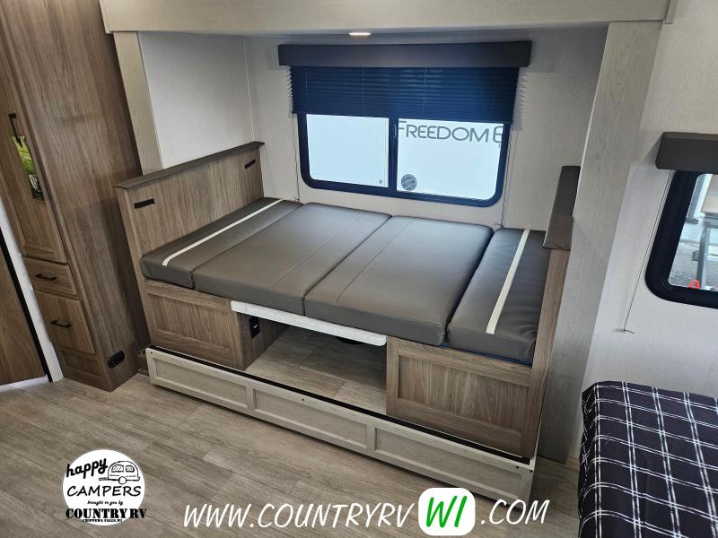 2026 Coachmen Freedom Express Select Edition 21SE offers a fresh, improved take on the classic bunkhouse layout. This lightweight, family-friendly travel trailer features an exterior camp kitchen and a 2" receiver prep—perfect for hauling bikes or extra gear. Inside, the bottom bunk flips up to create taller interior storage, ideal for bikes, kennels, or other camping essentials you want safely inside the camper. Step into the bathroom and you’ll immediately notice the larger shower, a standout feature compared to most units in this class. If you’re looking to keep weight and length down without sacrificing quality, comfort, or functionality—look no further.