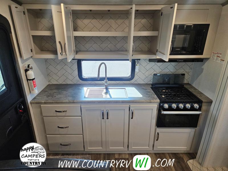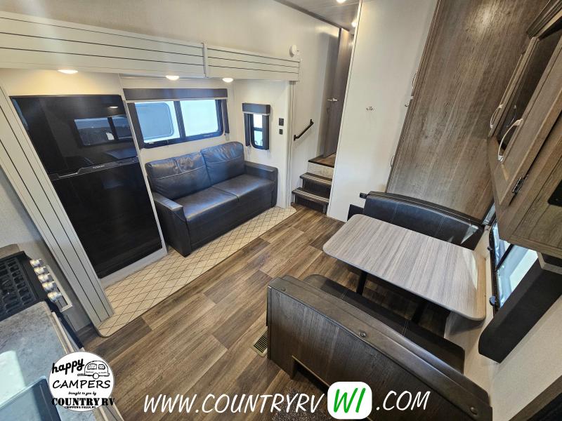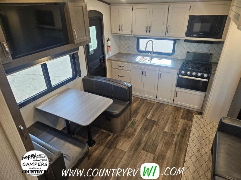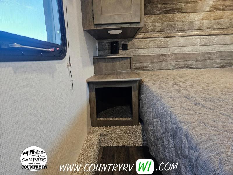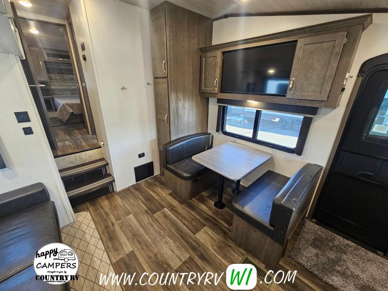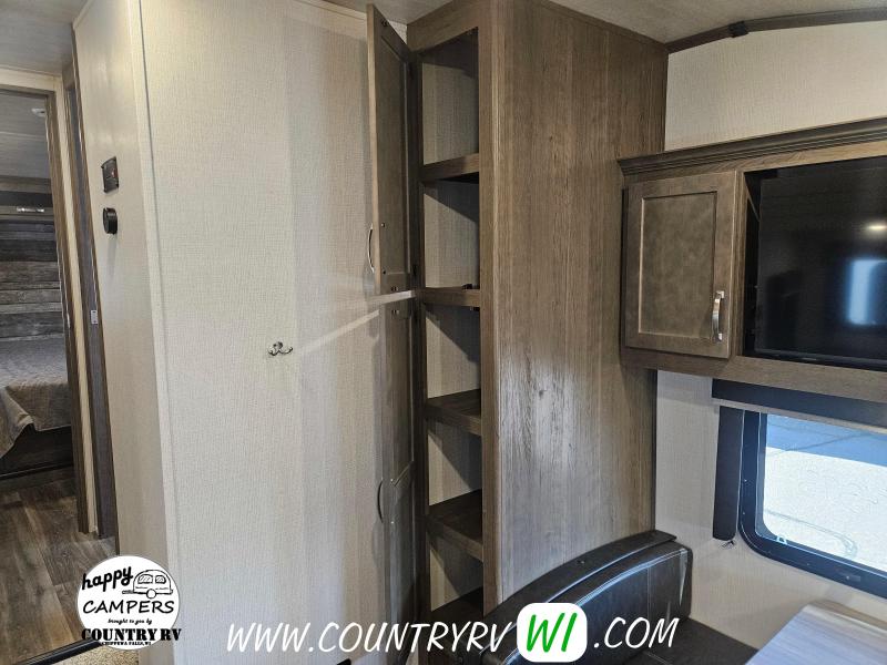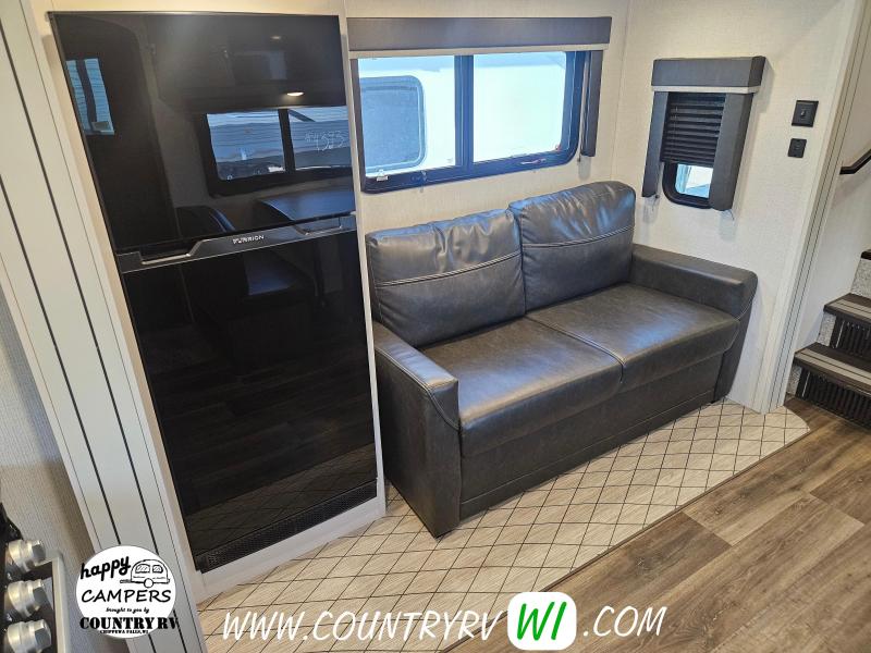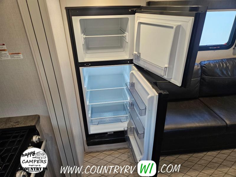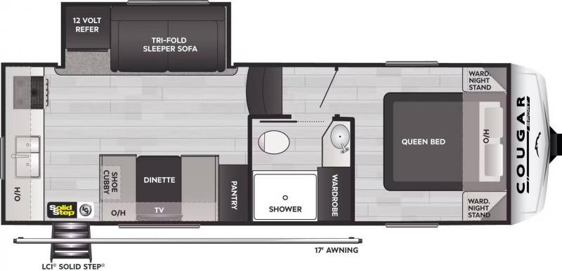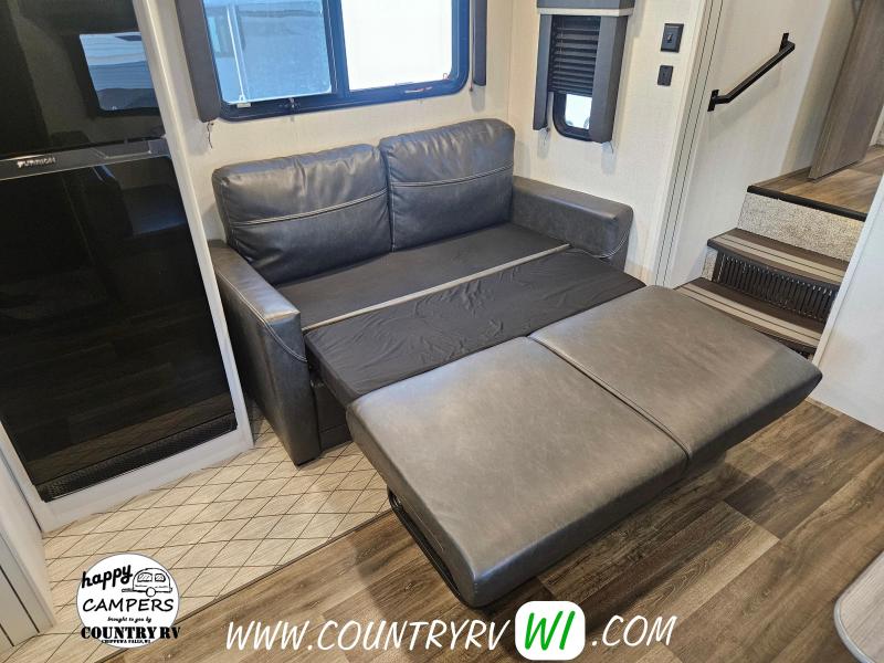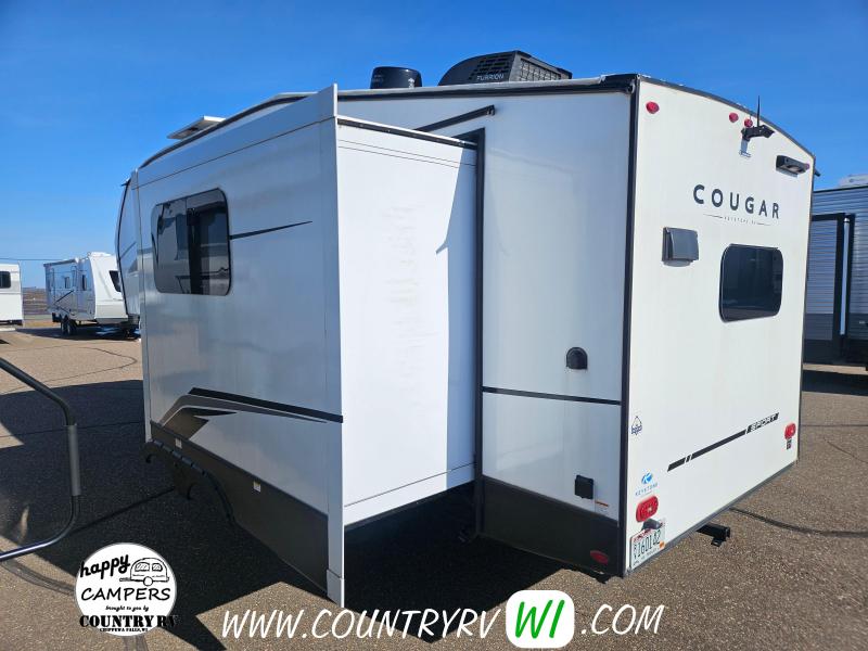 The 2023 Cougar 2100RK 5th Wheel is a dry camper’s dream! Powered with a solar panel and lithium battery, this rig is ready for off-grid adventures. The rear kitchen boasts plenty of countertop space and ample storage—perfect for cooking and entertaining. Step inside and you’ll immediately notice the handy shoe cubby. The 10 cu. ft. refrigerator keeps all your favorites fresh, while the tri-fold sofa across from the TV makes movie nights a breeze. Hosting friends? Fold out the hide-a-bed and lower the dinette to sleep up to six comfortably. Upstairs, the bathroom features a motion-activated light and a spacious shower that everyone will love. The master bedroom is designed with CPAP-ready sides of the bed and a large wardrobe for all your storage needs. The 2023 Cougar 2100RK isn’t just a camper—it’s your home away from home.