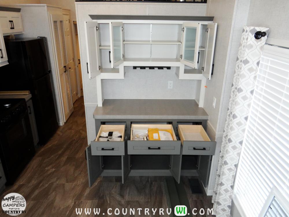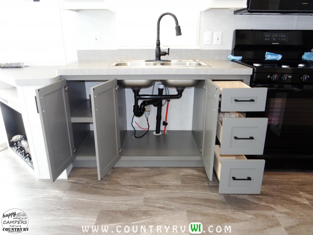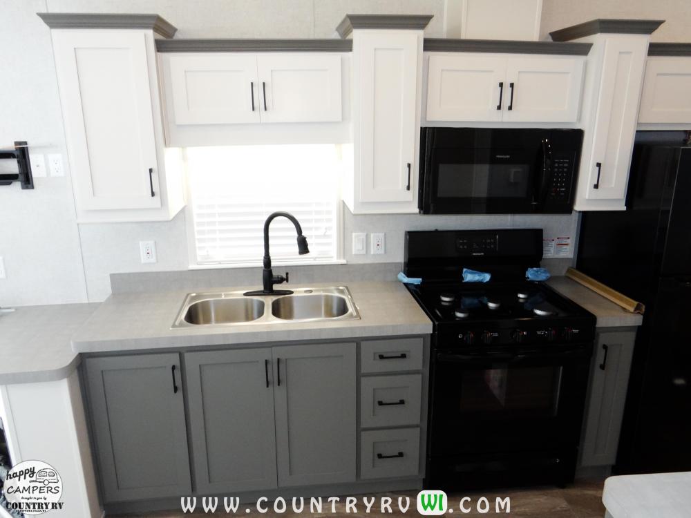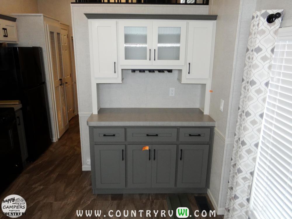 Trim – Slate Gray in Kitchen & Hutch (Remainder of Camper in Irish Café)
