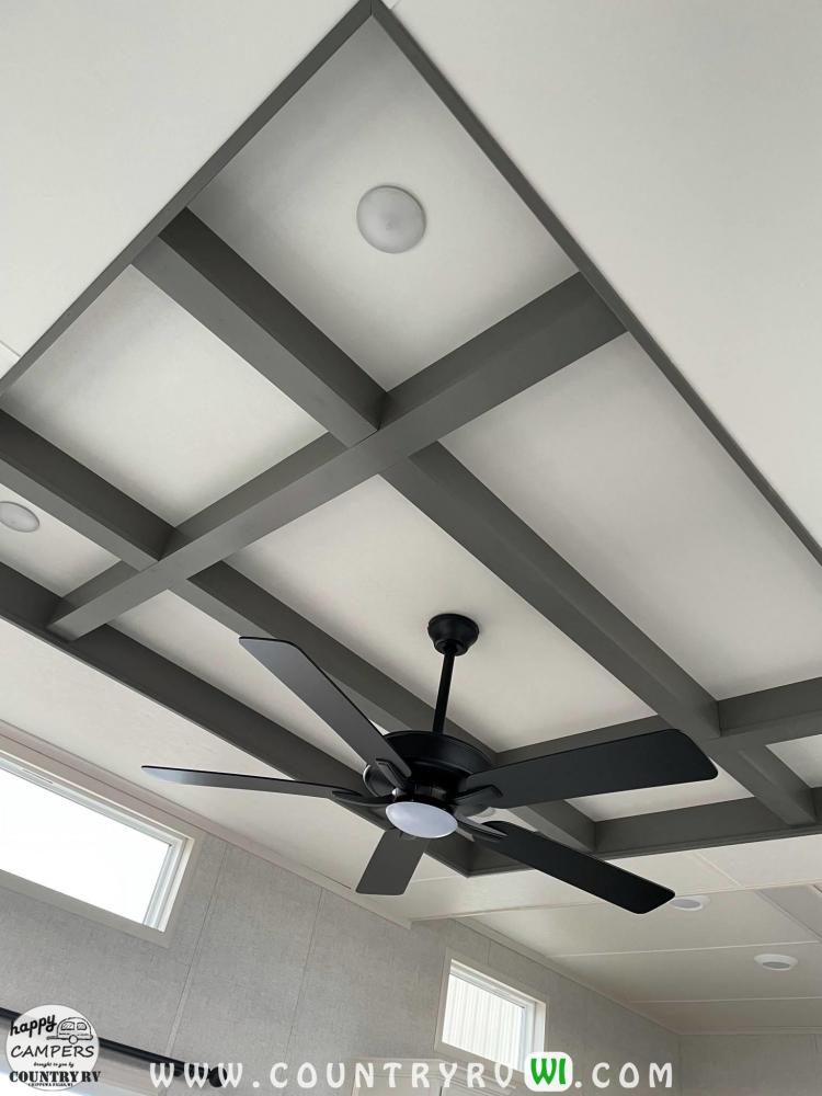 Ceiling Tray Adobe W/Beams & LED Lights in Gray (Living Room)