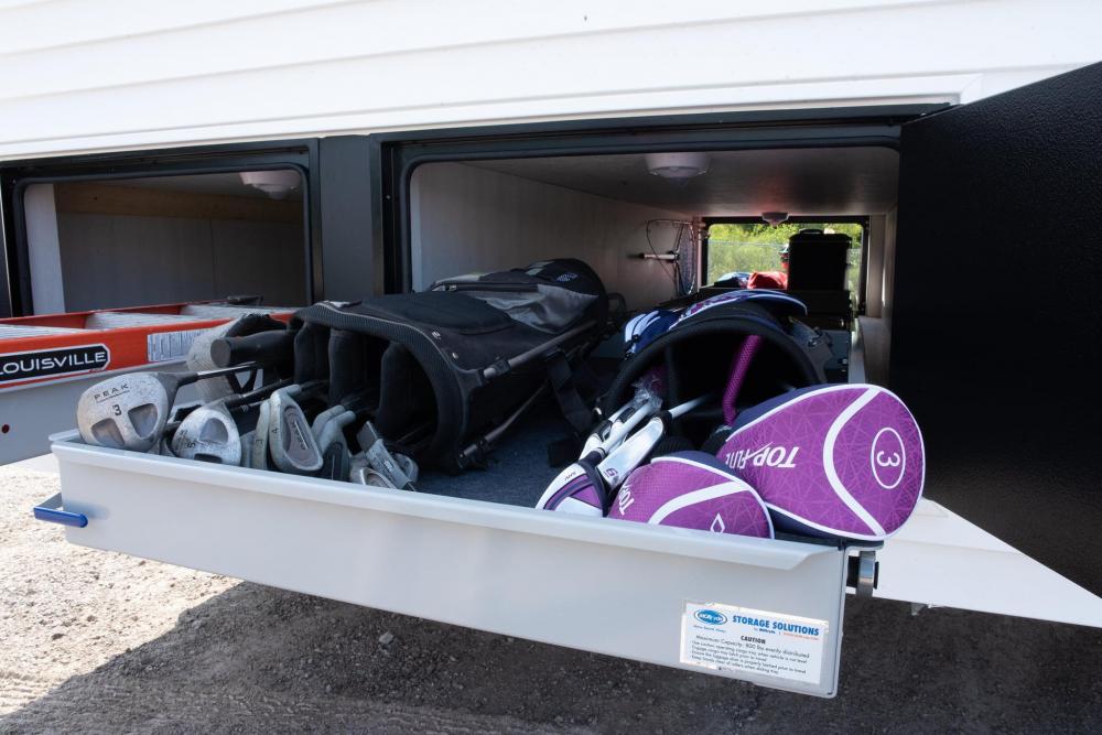 Pass Through Storage Option with 4 Exterior Doors & Lights Pull-out Cargo Trays separate option exterior & interior
